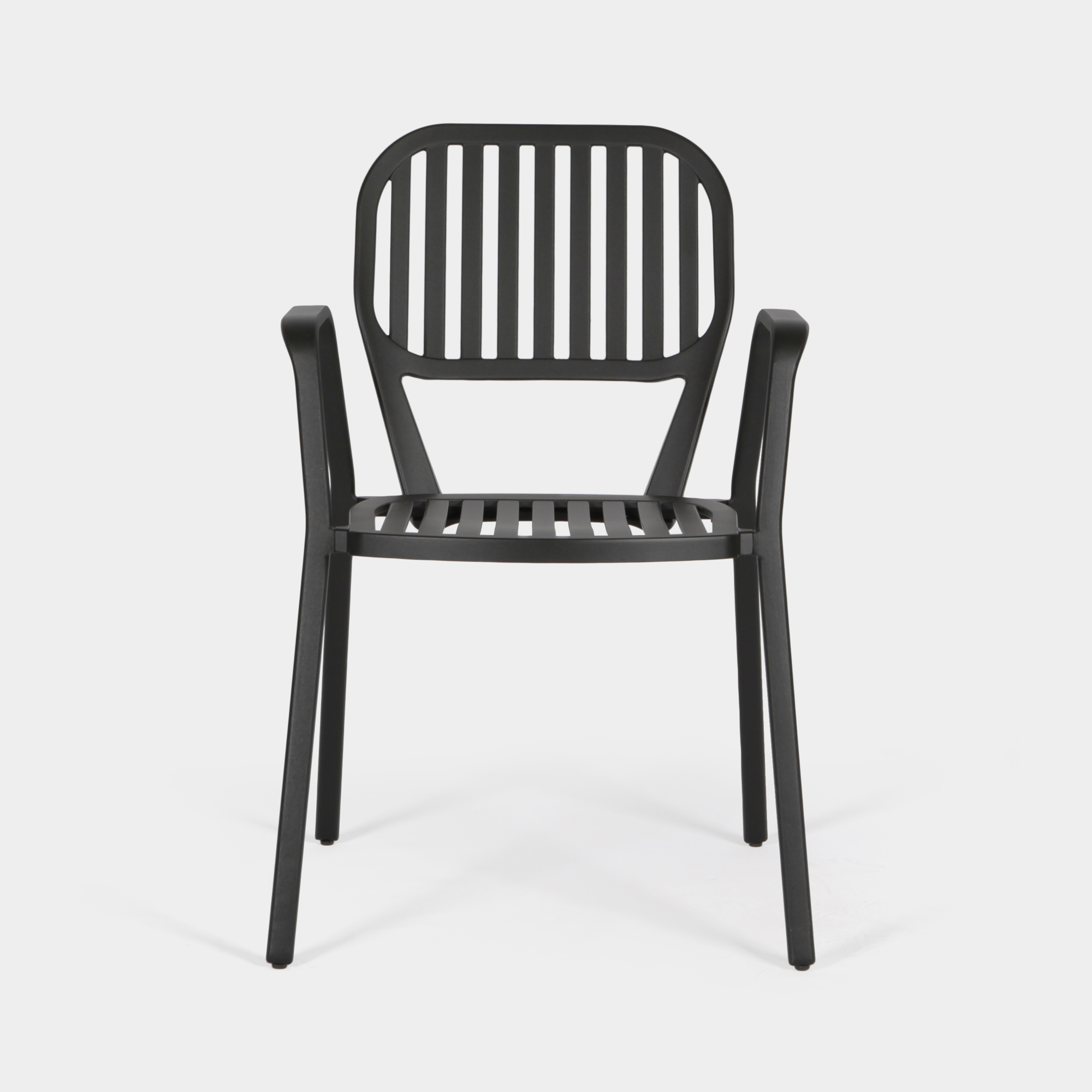 Fabriquée en aluminium moulé sous pression de haute qualité et ennoblie par un revêtement par poudre électrostatique, la chaise d'extérieur Izmir est parfaitement protégée contre les intempéries, les rayons UV et la corrosion.