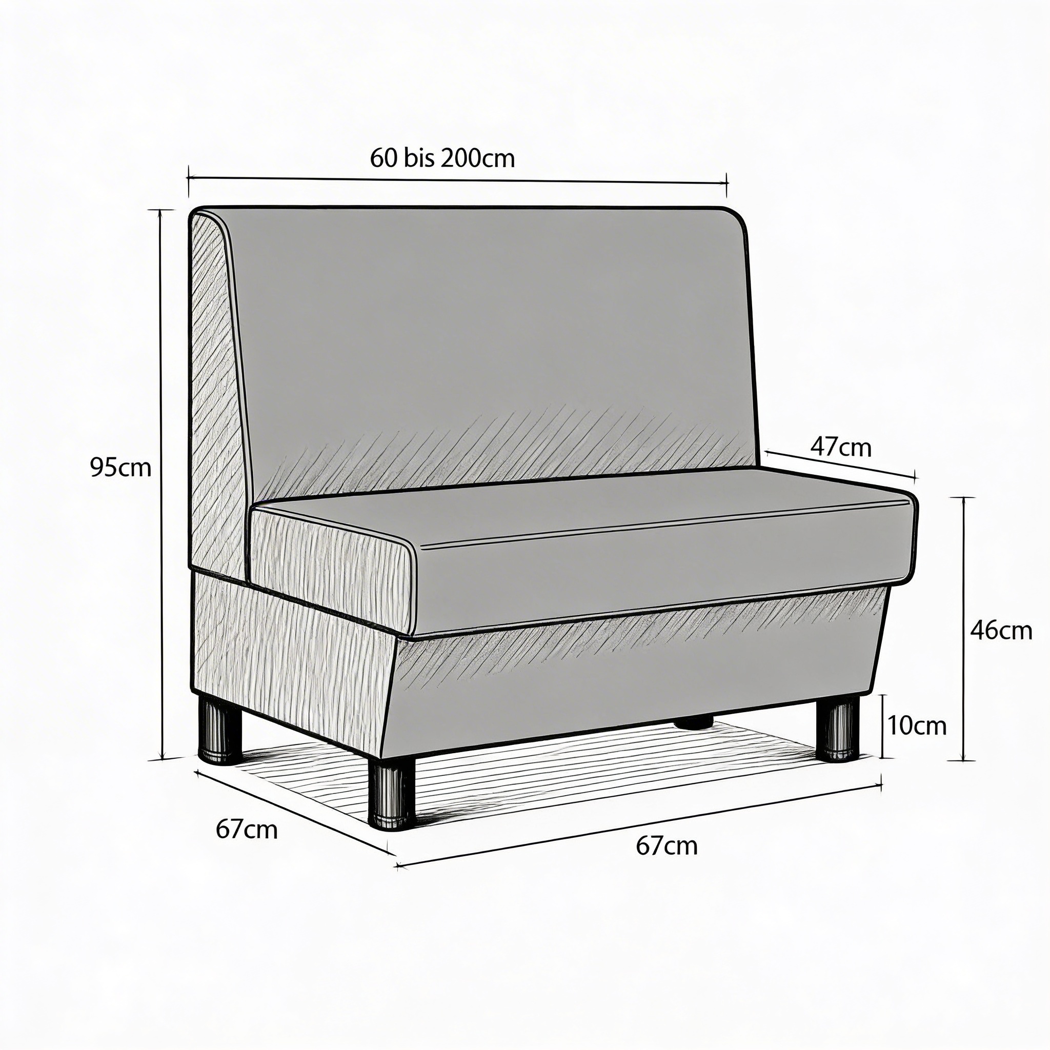 Die Gastrobank Toledo aus Kunstleder ist die ideale Sitzlösung für Restaurants, Cafés, Bars und Hotels, die Wert auf stilvolle Gastronomie Möbel, hohe Belastbarkeit und einfache Reinigung legen. Durch ihr modernes Design und die stabile Bauweise eignet sich diese Sitzbank für die Gastronomie perfekt für den täglichen Einsatz in stark frequentierten Bereichen.
