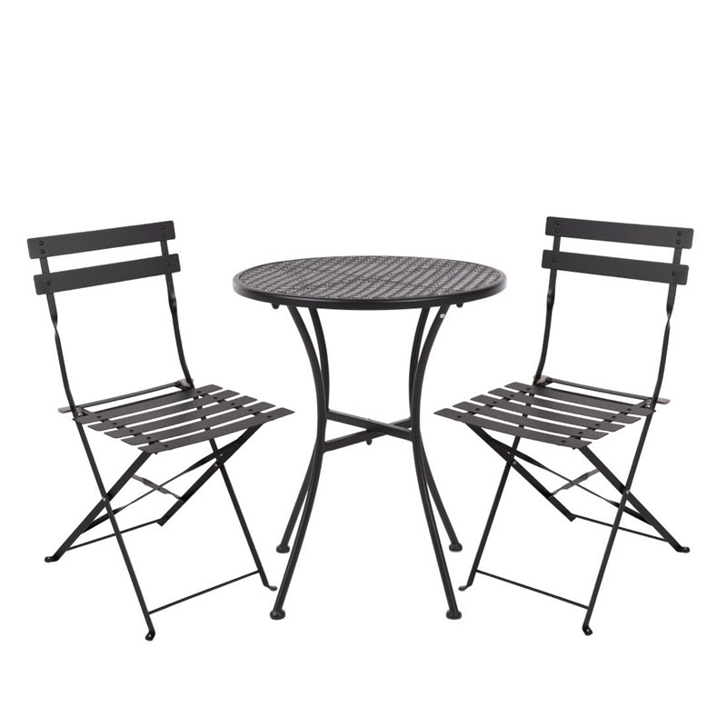 Outdoor Bistro Tisch Set Schwarz Stahl - Fero Stühle klappbar