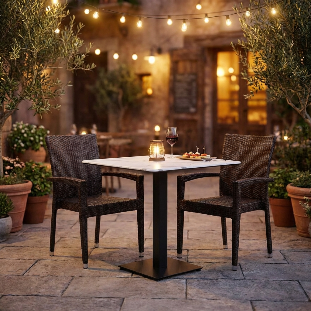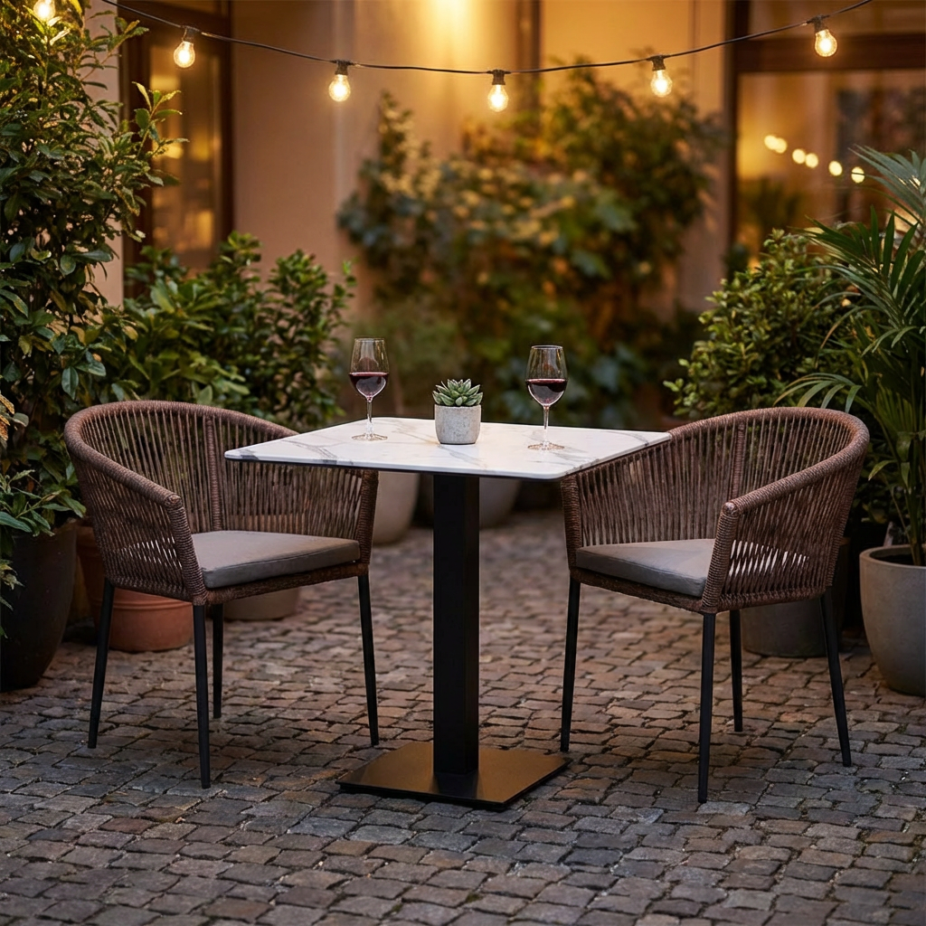 Choisir les tables de bistrot avec HPL Compact Catania en 70x70cm aspect marbre blanc pour l'extérieur est en effet un choix judicieux. La combinaison de la robustesse, de l'imperméabilité et du design attrayant en fait un complément précieux pour toute entreprise de restauration. En plus d'être fonctionnels et résistants aux intempéries, les plateaux de table sont également esthétiques et s'adaptent harmonieusement à différents environnements. Leur taille compacte permet une utilisation polyvalente et optimise l'espace disponible, sans pour autant renoncer au style. C'est un investissement qui tient compte à la fois des besoins pratiques de l'exploitation quotidienne et de l'aspect général de l'espace gastronomique.