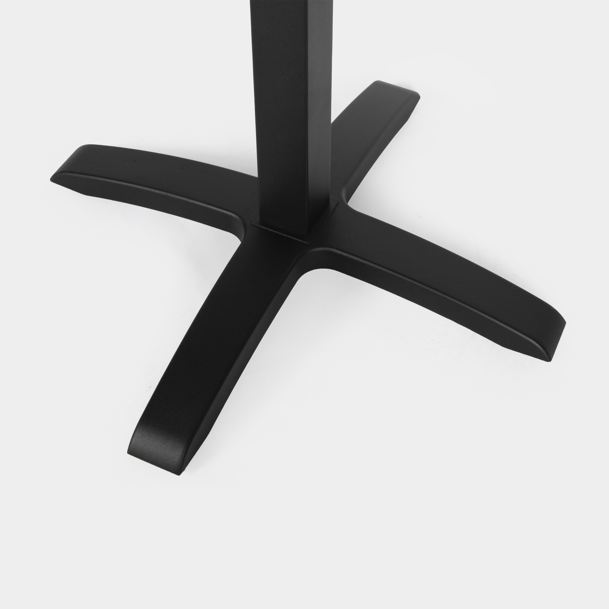 Dieses Tischgestell wurde speziell für den Einsatz in gastronomischen Einrichtungen sowie im Innen- und Außenbereich konzipiert. Die Konstruktion besteht aus einem Kreuz- und Säulenelement aus hochdruckgegossenem Aluminium sowie einem Sockel aus Gusseisen. Die Oberfläche ist mit einer elektrostatischen Pulverbeschichtung versehen und in der Farbe Schwarz erhältlich – für eine langlebige, korrosionsbeständige Nutzung.