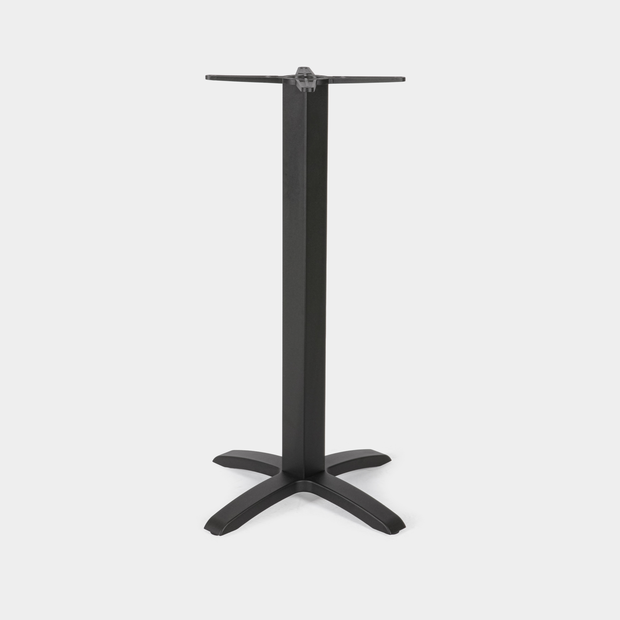 Dieses Tischgestell wurde speziell für den Einsatz in gastronomischen Einrichtungen sowie im Innen- und Außenbereich konzipiert. Die Konstruktion besteht aus einem Kreuz- und Säulenelement aus hochdruckgegossenem Aluminium sowie einem Sockel aus Gusseisen. Die Oberfläche ist mit einer elektrostatischen Pulverbeschichtung versehen und in der Farbe Schwarz erhältlich – für eine langlebige, korrosionsbeständige Nutzung.