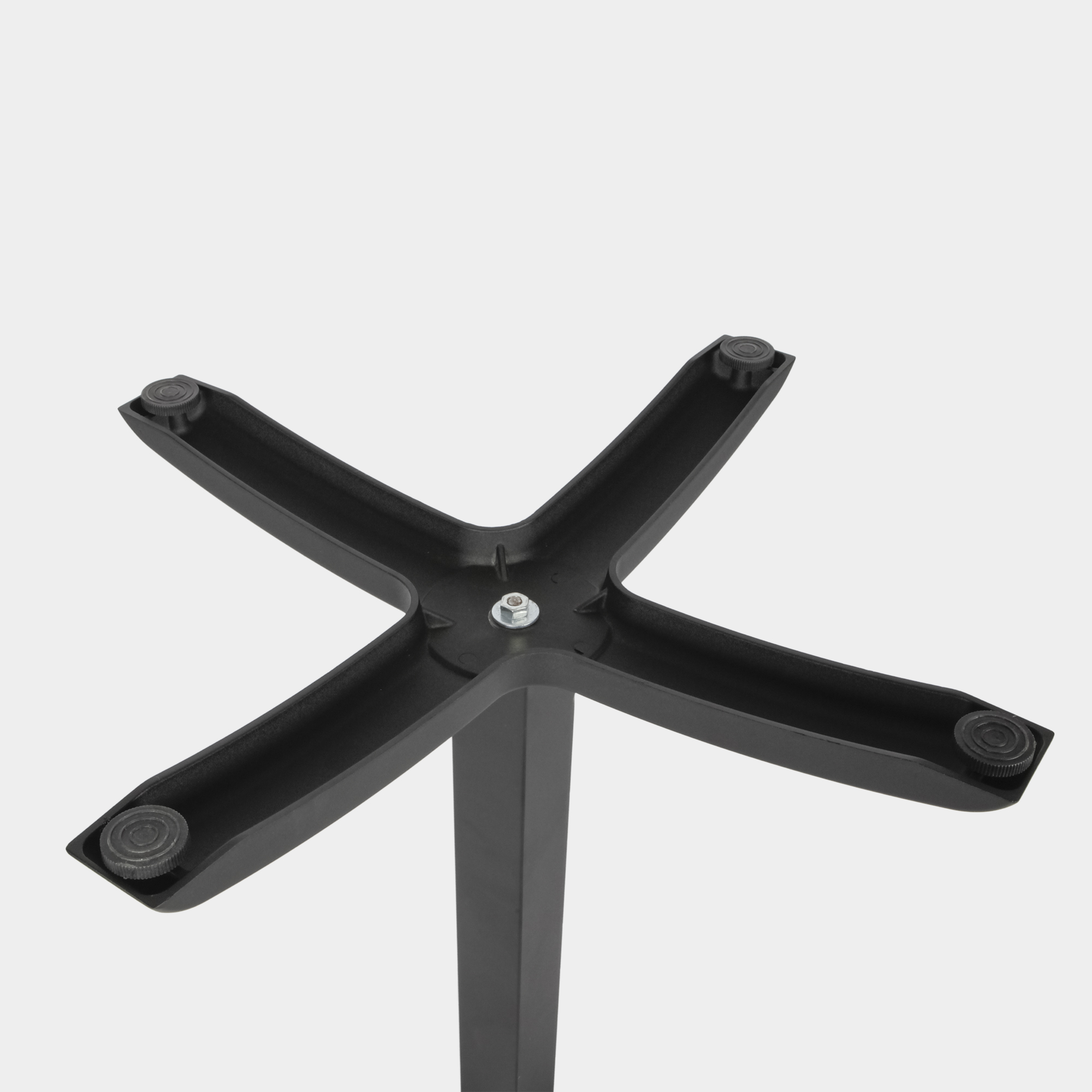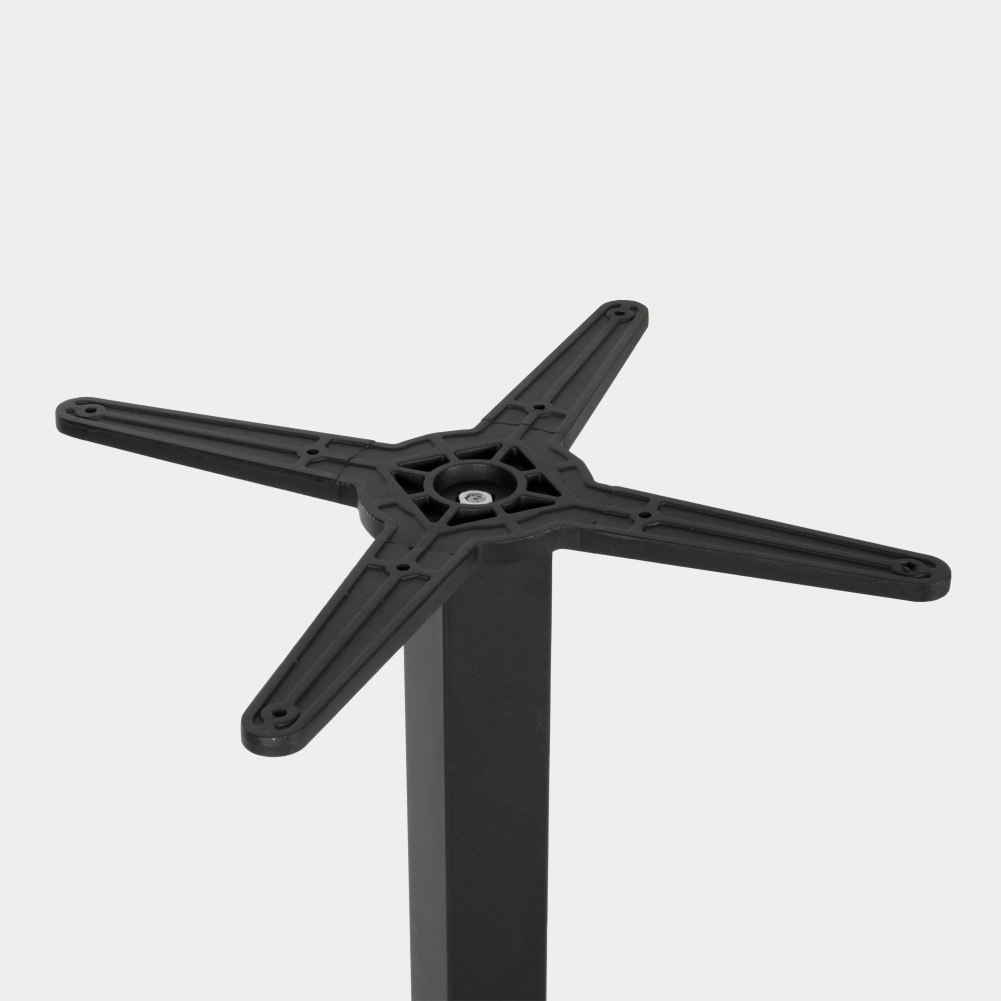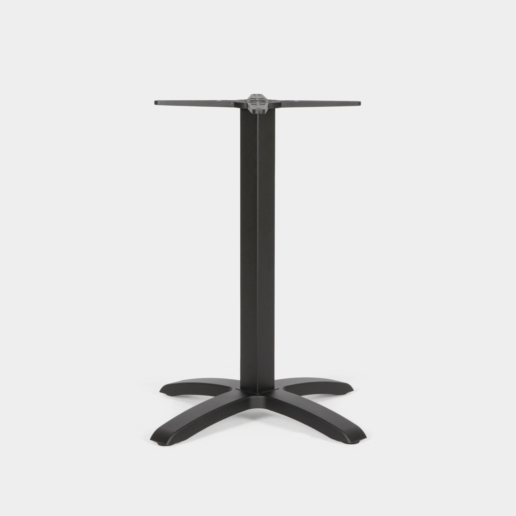 Dieses Tischgestell wurde speziell für den Einsatz in gastronomischen Einrichtungen sowie im Innen- und Außenbereich konzipiert. Die Konstruktion besteht aus einem Kreuz- und Säulenelement aus hochdruckgegossenem Aluminium sowie einem Sockel aus Gusseisen. Die Oberfläche ist mit einer elektrostatischen Pulverbeschichtung versehen und in der Farbe Schwarz erhältlich – für eine langlebige, korrosionsbeständige Nutzung.