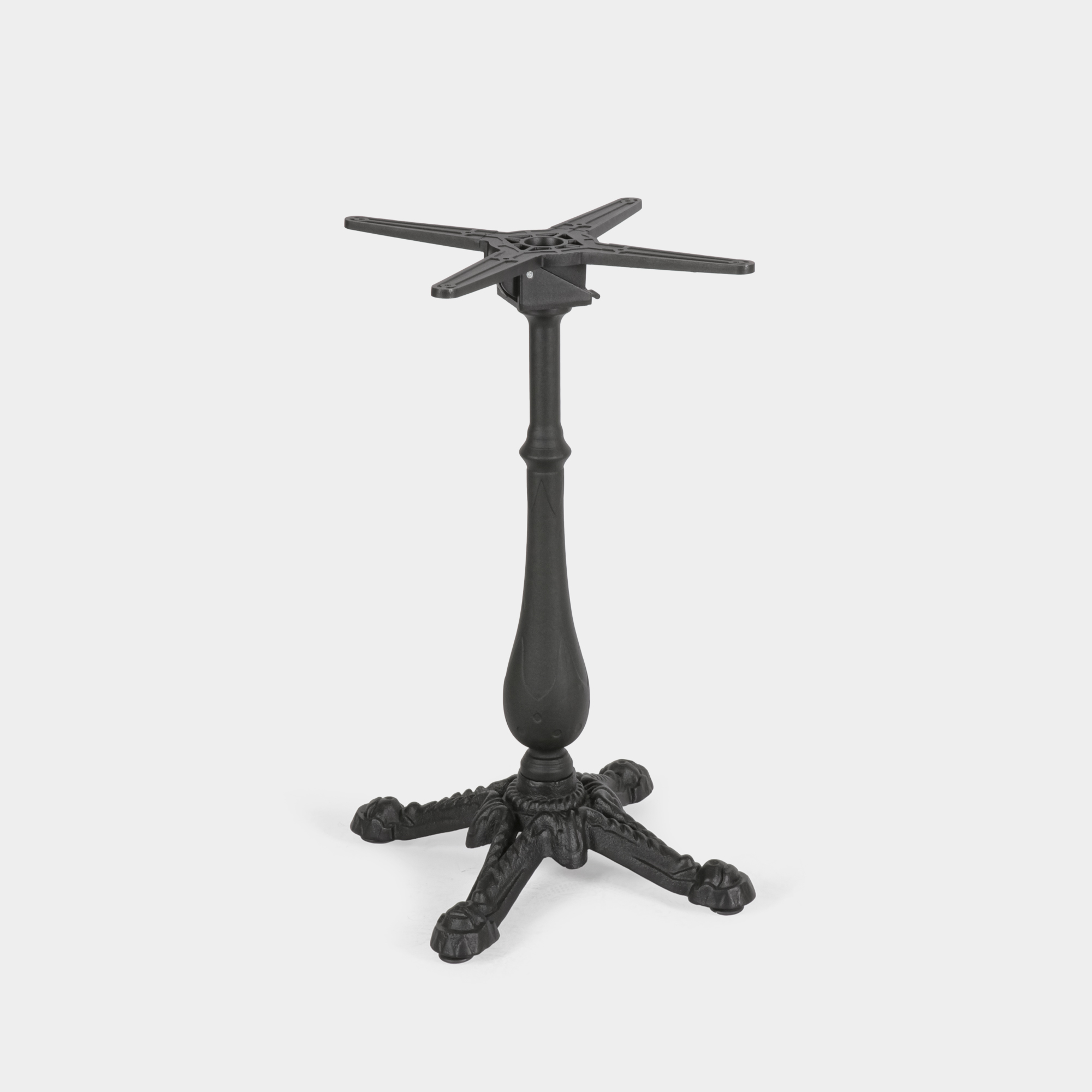 Erhältlich in der Farbe Schwarz, wahlweise in der Ausführung „Standard“ oder „Klappbar“, eignet sich das Tischbein sowohl für Bistrotische als auch für Stehtische und bietet maximale Flexibilität für unterschiedliche Einsatzbereiche.