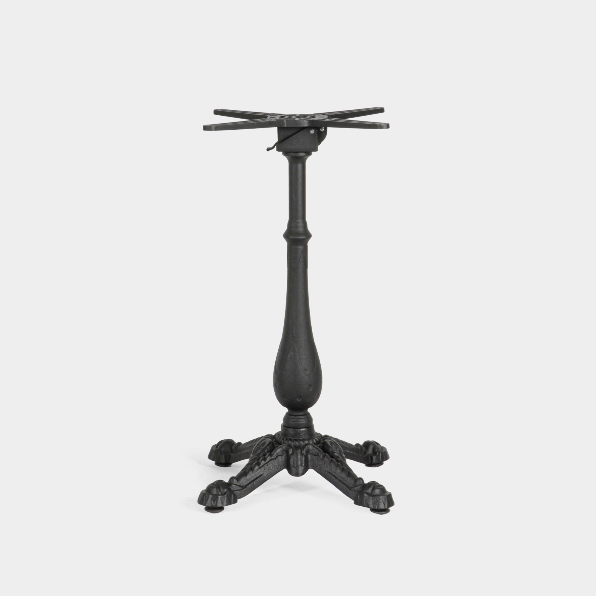 Erhältlich in der Farbe Schwarz, wahlweise in der Ausführung „Standard“ oder „Klappbar“, eignet sich das Tischbein sowohl für Bistrotische als auch für Stehtische und bietet maximale Flexibilität für unterschiedliche Einsatzbereiche.